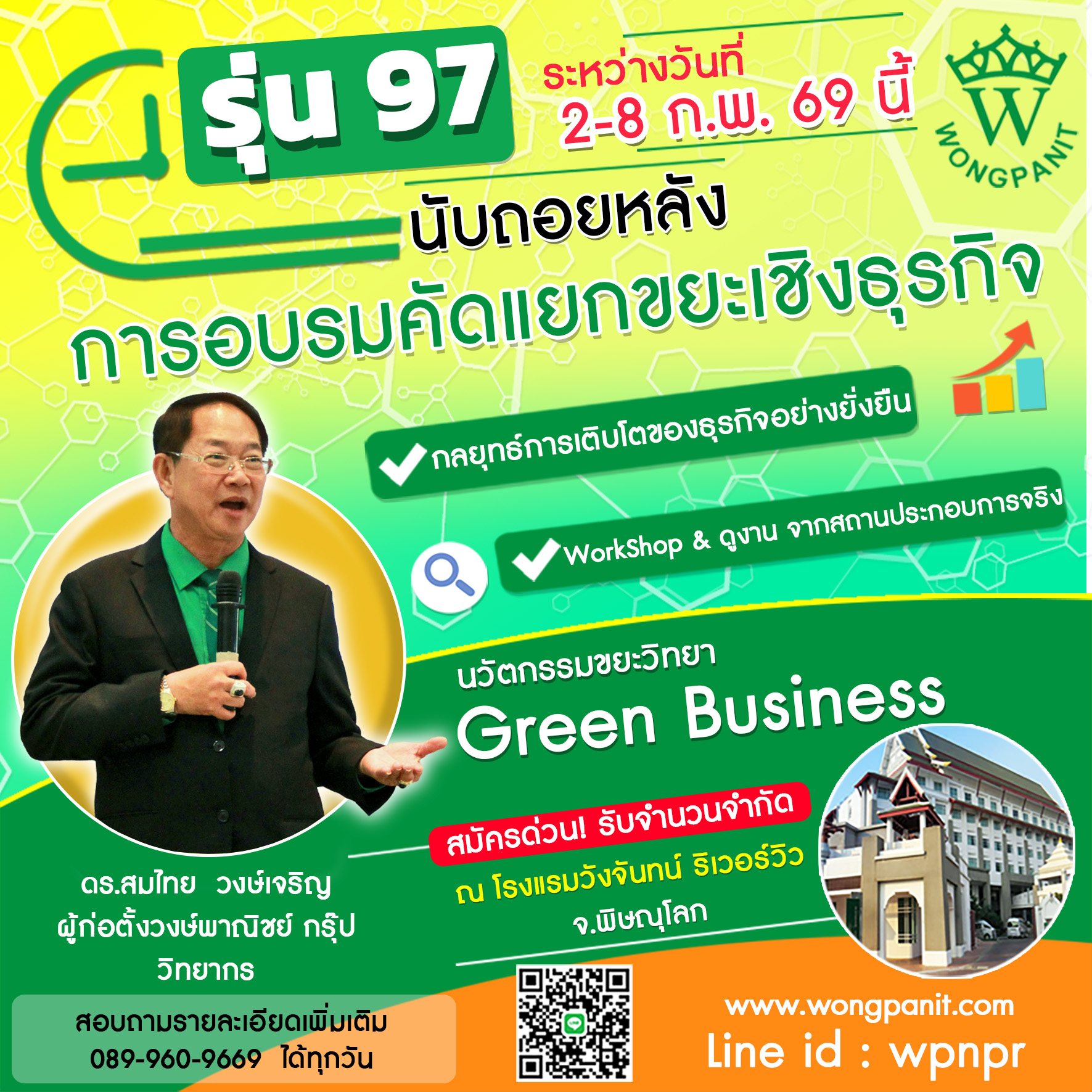 บริษัท วงษ์พาณิชย์ กรุ๊ป ขอเชิญผู้สนใจเข้าร่วม การอบรมคัดแยกขยะเชิงธุรกิจ รุ่นที่ 97 ระหว่างวันที่ 2–8 กุมภาพันธ์ 2569 ณ โรงแรมวังจันทน์ ริเวอร์วิว จังหวัดพิษณุโลก
